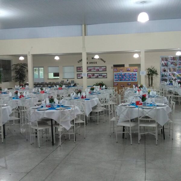 O Salão de Eventos da Creche Mãezinha, localizado na Rua Vicentes Tasques, 222 - Jd. do Estádio, tem capacidade para até 350 pessoas.
